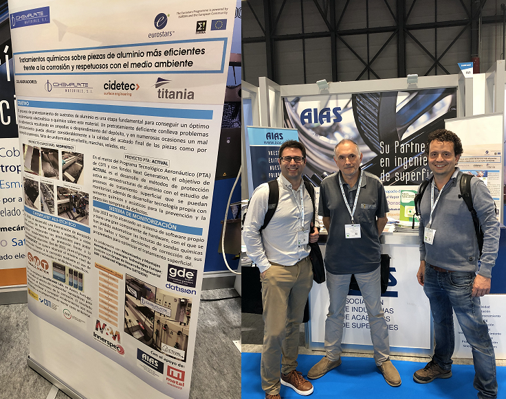 Por una parte, en el marco del proyecto PTA ACTIVAL se presentaron las principales características del equipo de monitorización como solución de optimización al mantenimiento eficiente de baños de decapado claves para el tratamiento de aluminio en el sector aeronáutico. Por la otra, el póster también explicó los primeros avances y objetivos del proyecto Eurostars NEOPROTECT, que con la investigación en la aplicación de inhibidores inorgánicos en los recubrimientos sobre aluminios en las fases de pretratamiento se persigue aumentar de forma notoria los estándares en la resistencia a la corrosión del aluminio en el sector aeronáutico.
