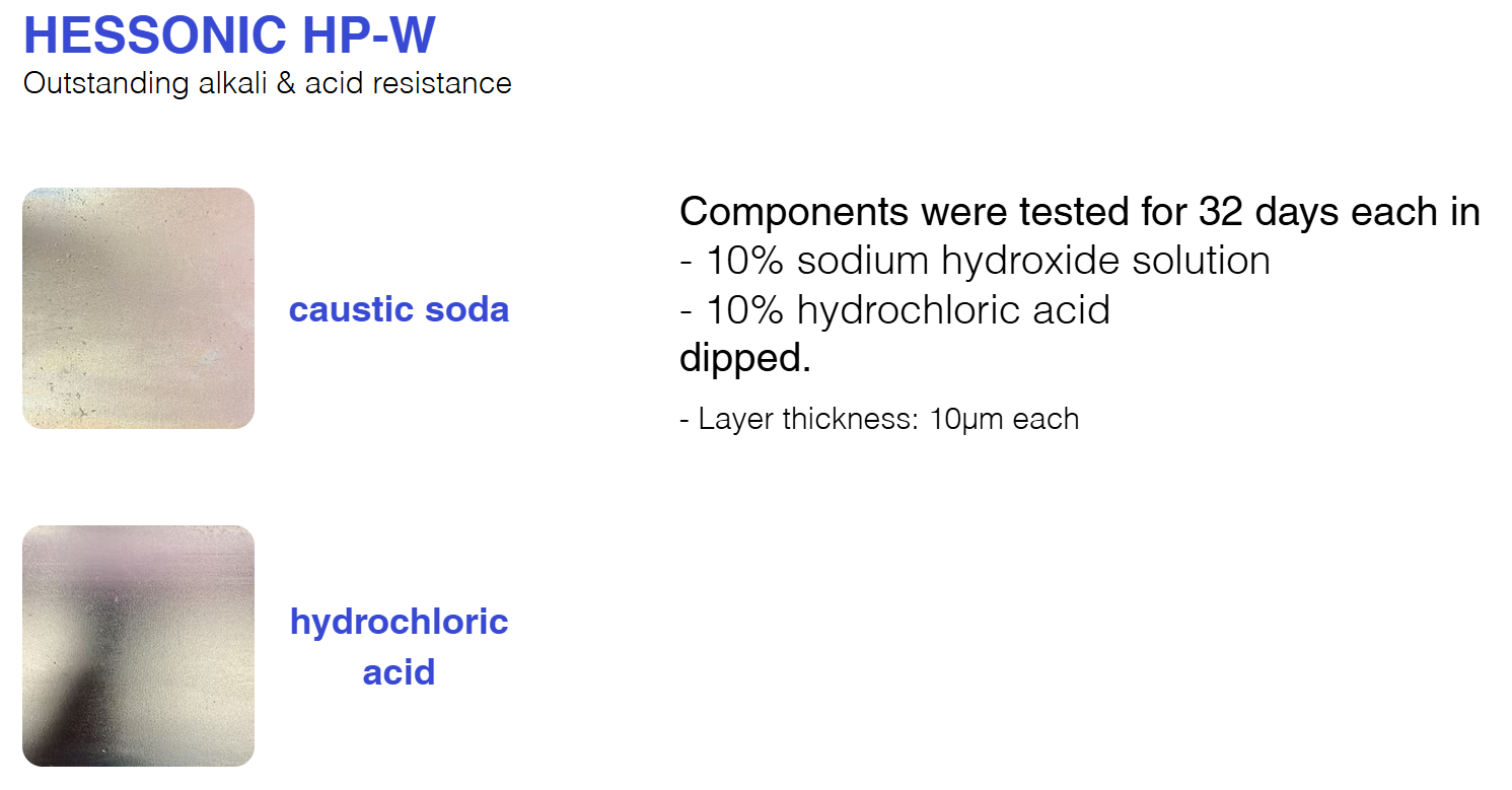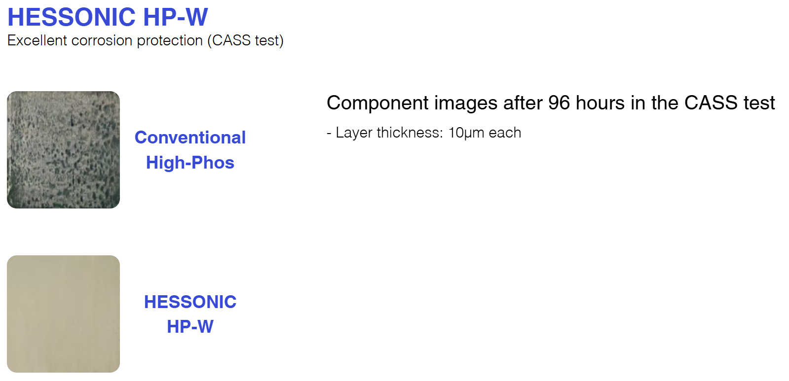 Chemplate Materials dispone de una amplia gama de procesos de níquel químico, (bajo, medio y alto contenido en fósforo), que cubren la mayoría de las aplicaciones de este tipo de tratamiento que se aplican en los distintos sectores de la industria. Desde hace mucho tiempo, empresas líderes en el ámbito nacional están trabajando con nuestros baños con un excelente nivel de calidad y satisfacción. En este caso presentamos la versión Ni de alto contenido en P que contiene Tungsteno en la formulación, producto llamado como HESSONIC HP-W, que permite: